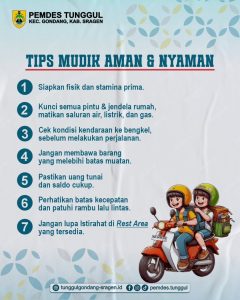 Berikut kami informasikan terkait dengan Mudik Aman & Nyaman. 1. Siapkan fisik dan stamina prima. 2. Kunci semua pintu & jendela rumah, matikan saluran air,